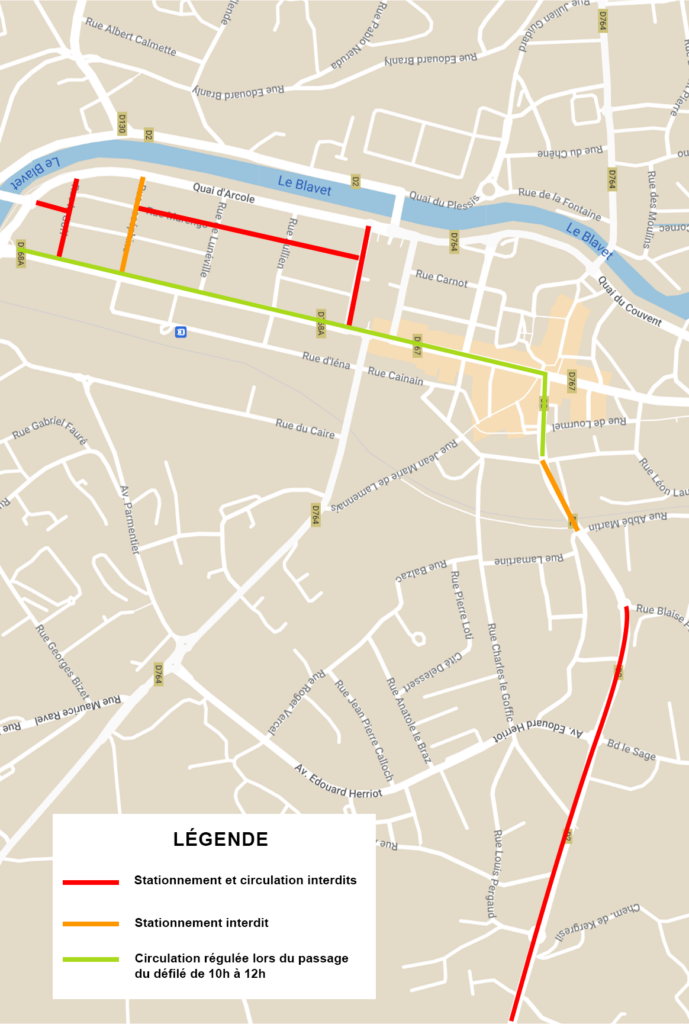 - Stationnement et circulation interdits rue François Mitterrand le 25/05 de 10h à 14h