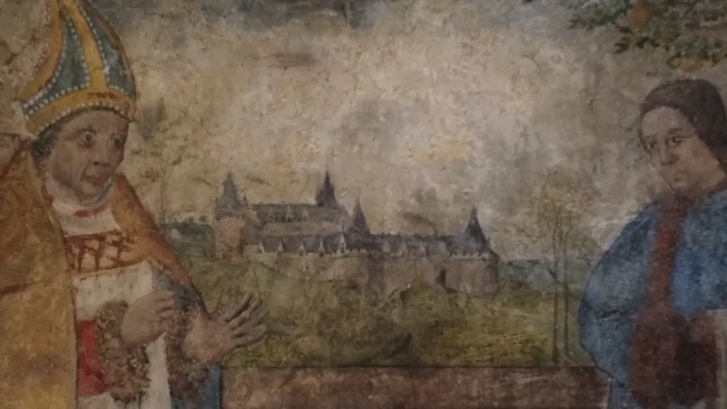 Pendant des décennies, les historiens se sont interrogés sur l’existence ou non d’une quatrième tour et d’un corps de logis Est. En effet, une peinture murale datée de 1500 et conservée dans l’église de Stival fait apparaitre le château avec 4 tours et 3 corps de logis. On pouvait donc penser qu’il en était ainsi dans la réalité, sauf à imaginer que l’artiste ait représenté une vision idéale et non réelle du château.